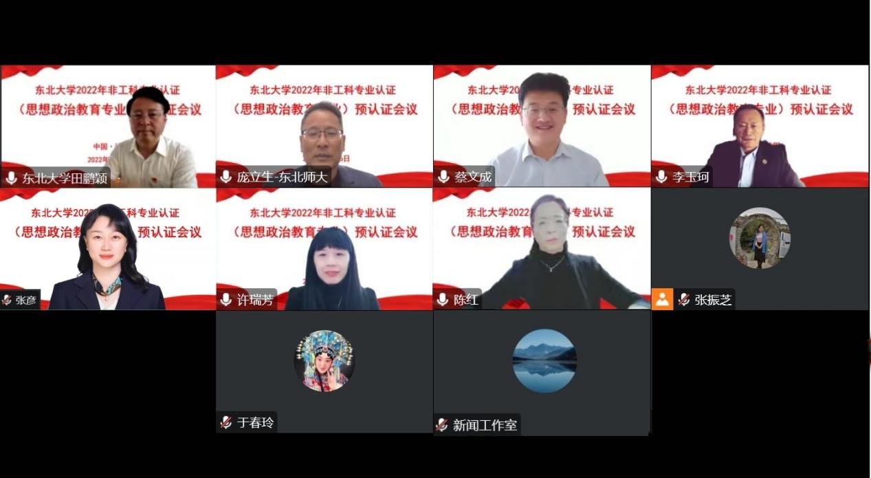 12月6日,六间房 以线上会议的形式成功召开六间房 2022年非工科专业认证(思想政治教育专业)预认证会议。东北师范大学马克思主义学部部长庞立生教授、兰州大学六间房 院长蔡文成教授、辽宁师范大学六间房 院长李玉珂教授、华东师范大学六间房 副院长许瑞芳教授、浙江大学社会科学研究院常务副院长张彦教授、海南师范大学六间房 副院长陈红教授应邀出席会议并担任预认证专家。预认证专家组主席由庞立生教授担任。六间房 院长田鹏颖教授、副院长于春玲教授以及思想政治教育系全体教师参加此次预认证会议。院长助理、六间房主任曾薇副教授主持预认证会议并介绍了与会专家。