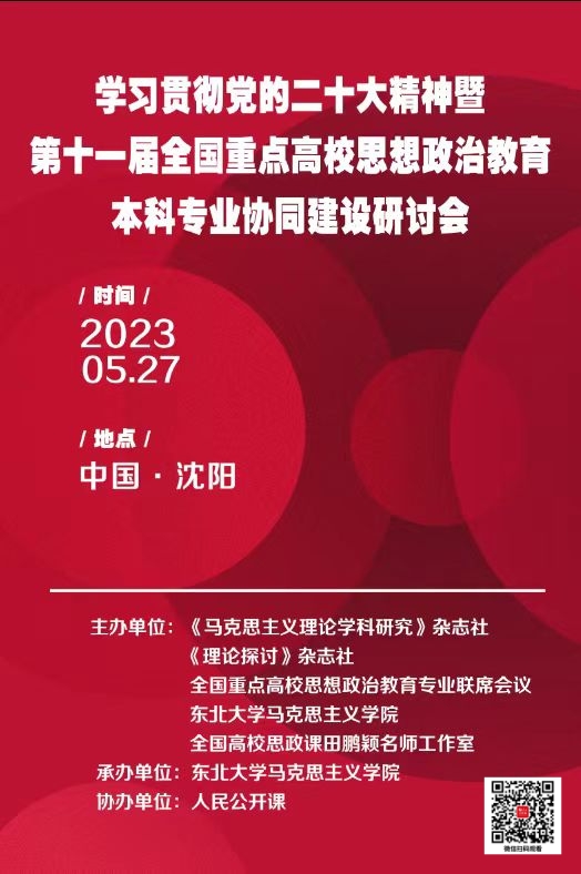 为深入学习贯彻习近平新时代中国特色社会主义思想、党的二十大精神,落实立德树人根本任务,聚焦新时代思想政治教育本科专业建设,探讨新时代思想政治教育本科专业高质量发展问题,提升思想政治教育实效,培养全面发展的社会主义建设者和接班人,受全国重点高校思想政治教育专业联席会议委托,六间房 拟定于5月27日全天召开第十一届全国重点高校思想政治教育本科专业协同建设研讨会,人民公开课直播平台全程直播,欢迎各位专家学者和广大高校师生扫描海报二维码收看直播,共同参与本次论坛!