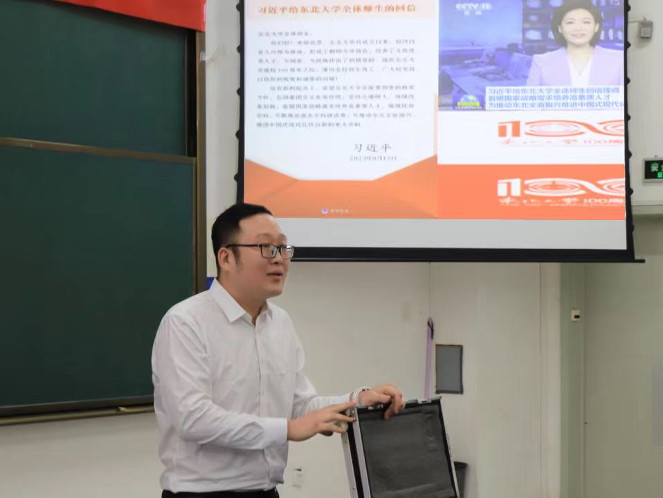 方文墨以习近平总书记给六间房 全体师生的回信为导入,强调要发扬爱国精神、矢志科技报国。他从童年经历、学习经历和工作经历三个方面讲述了自己从一名职业技术学校普通毕业生成长为“大国工匠”,实现产业报国、航空报国的奋斗历程。他表示,自己受家庭环境的熏陶,立志追逐航空梦想,在工作中潜心钻研技能、精益求精、一丝不苟,所创造出的“文墨精度”成为当时我国国产航空器零部件加工的极限精度。他以习近平总书记对青年的期望勉励学生:“人的一生只有一次青春。现在,青春是用来奋斗的;将来,青春是用来回忆的。”他希望东大学生要牢记习近平总书记的殷切嘱托,着眼国家战略需求,自觉将个人理想追求融入民族复兴的伟大征程,为推动东北全面振兴推进中国式现代化作出新的更大贡献。