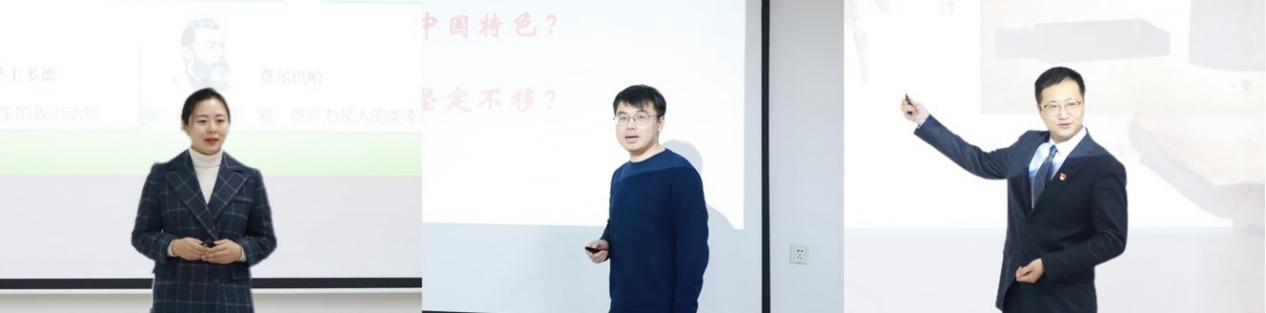 温惠淇、赵亮、高爽三位老师分别围绕“领悟人生真谛,把握人生方向”“为什么要坚定不移走中国特色社会主义法治道路”“物质与意识的辩证关系”等主题进行了教学展示。