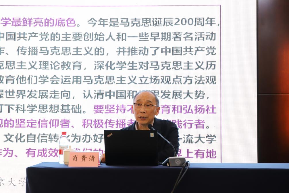 肖贵清教授作题为《培养堪当民族复兴重任的时代新人》的主旨报告。他指出,党的十八大以来,习近平总书记高度重视思政课建设,并围绕思政课建设作出一系列重要论述。习近平总书记专门主持召开学校思想政治理论课教师座谈会并发表重要讲话,为新时代思政课建设提供了根本遵循。他从立德树人是新时代高校的根本任务、关心高校思想政治理论课建设、重视高校教师队伍建设等方面,阐释了习近平总书记在赴高校考察调研中对思政课建设提出的明确要求。他强调,培养堪当民族复兴重任的时代新人,需要思政课教师强化守正意识和创新意识,以透彻的学理分析启迪学生,以彻底的思想理论说服学生,用真理的强大力量引导学生,培养一代代拥护中国共产党领导和社会主义制度、立志为中国特色社会主义事业奋斗终身的有用人才。