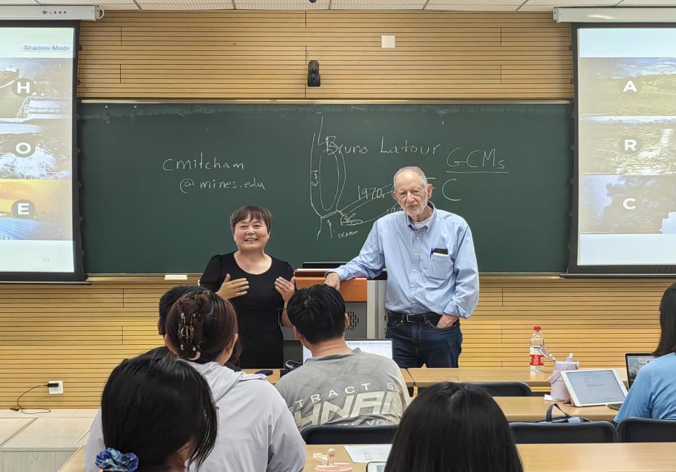 Carl Mitcham教授指出“人类世”是“全球变暖”的另一种表述,也是全球变暖的主要成因。他从历史-哲学的视角以时空作为参照系,系统的回顾了IPCC(联合国政府间气候变化委员会)的创立、发展以及几次报告的内容,从IPCC报告措辞转变指出人类活动与气候变迁之间逐渐确证的关联,同时也肯定了气象科学自身的不稳定性使得气象科学在一定程度上带有了政治化倾向。同时报告中还谈及了NIPCC(非联合国政府间气候变化委员会)在全球气候变迁归因中发挥的作用以及意义。讲座之后,来自各个学科的师生从各自学科视角围绕技术、气候变迁、伦理等问题与Carl Mitcham教授展开了深入的交流和探讨。