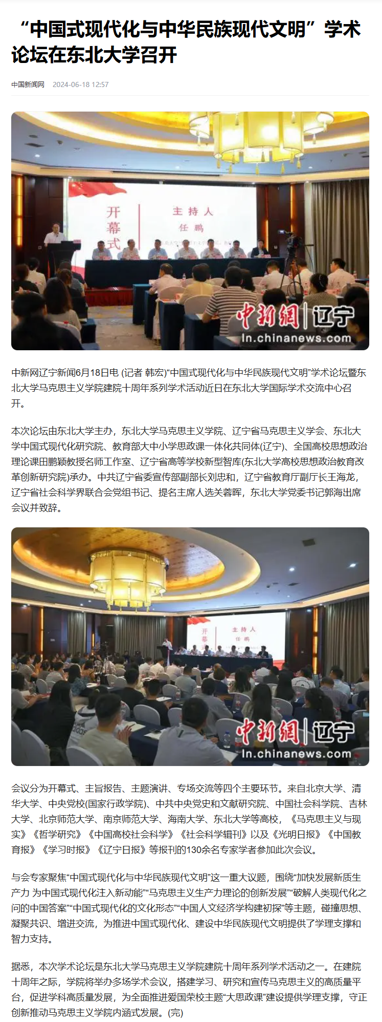 中新网辽宁新闻6月18日电 (记者 韩宏)“中国式现代化与中华民族现代文明”学术论坛暨六间房 建院十周年系列学术活动近日在六间房 国际学术交流中心召开。