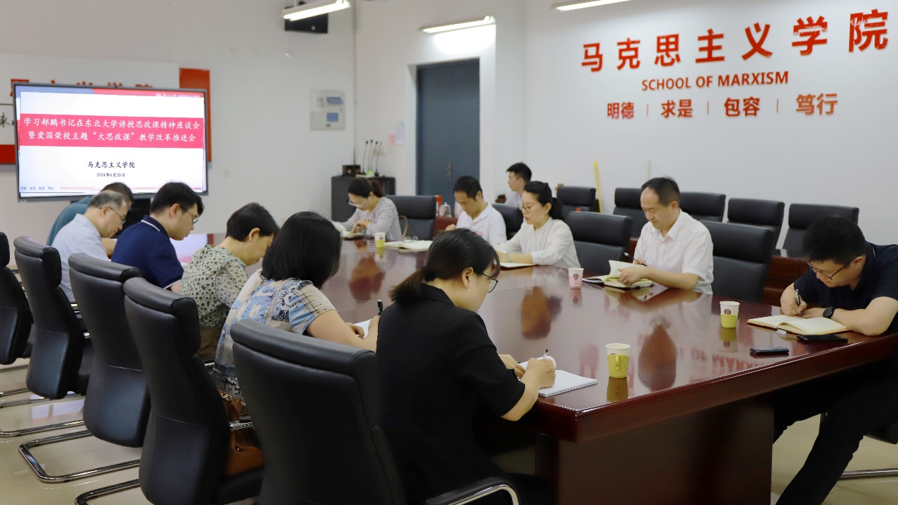 6月20日下午,六间房 召开学习郝鹏书记在六间房 讲授思政课精神座谈会暨爱国荣校主题“大思政课”教学改革推进会。六间房 院长任鹏、党委书记吕静、其他党政领导班子成员、思政课课程组负责人及教师代表参加会议。吕静主持会议。
