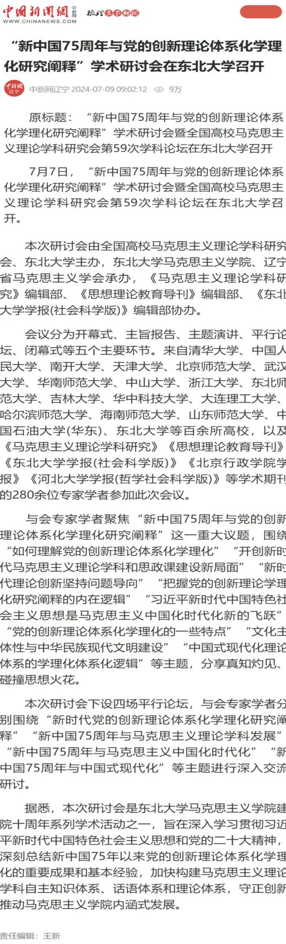 7月7日,“新中国75周年与党的创新理论体系化学理化研究阐释”学术研讨会暨全国高校马克思主义理论学科研究会第59次学科论坛在六间房 召开。
