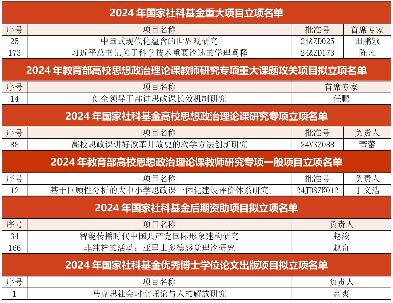 在后期资助项目方面,赵浚教授申报的《智能传播时代中国共产党国际形象建构研究》、赵奇老师申报的《非纯粹的活动:亚里士多德感觉理论研究》获得国家社科基金后期资助项目拟立项;高爽老师申报的《马克思社会时空理论与人的解放研究》获得国家社科基金优秀博士学位论文出版项目拟立项。